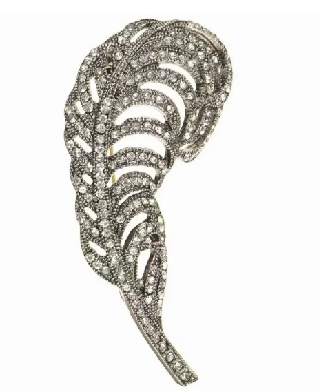 Grande Feather Brooch - Antique Silver/Clear Crystal