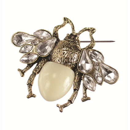 Queen Bee Brooch - Antique Gold/Clear/Cream