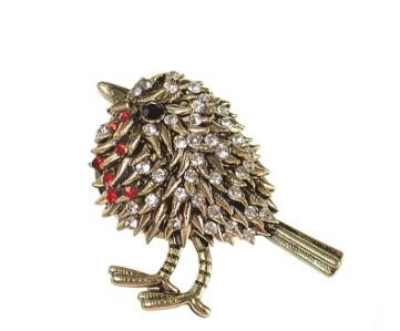 Rockin' Robin Brooch - Antique Gold/Clear/Ruby Red