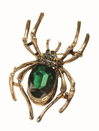 Bonnie Borrois the Spider Brooch - Antique Gold/Emerald