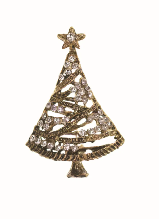 Christmas Tree Brooch - Antique Gold/Clear Crystals