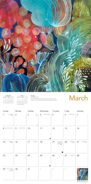 Esté MacLeod’s paintings are informed by the real and the imaginary. The variety of techniques Esté uses to layer colour and shapes adds an ethereal element to her work and this wonderful wall calendar brings together a vibrant selection of 12 of her artworks. Her background in textile and ceramic design is noticeable in the stylised, abundant and colourful forms used in her paintings. The datepad features previous and next month’s views. Printed on FSC-certified paper, with plastic-free packaging.
