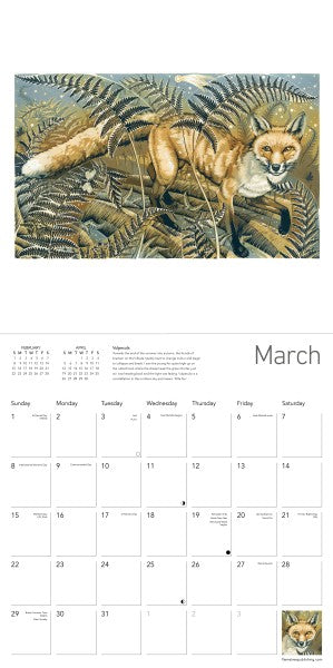 Martin Truefitt-Baker is a fine art printmaker and painter living in the Brecon Beacons national park, South Wales, UK. His linocut prints are of the animals he has seen on his walks through the local landscape, mostly within just a couple of miles of his home. Martin always tries to catch some of the magic in the way the animal moves and lives within its environment. The beautiful Usk valley, rough mountainsides, twisted trees, wild flowers and busy insects fill the backgrounds of his prints. This wall calendar features graceful owls, foxes, badgers, otters, swallows and more. Insightful text form the artist himself accompanies each work and the datepad features previous and next month’s views. Printed on FSC-certified paper, with plastic-free packaging.