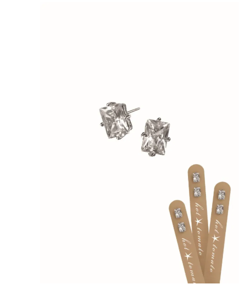 Brilliant Sparkle Oblong Studs Earrings - Silver/Clear Usually ships within 24 hours.