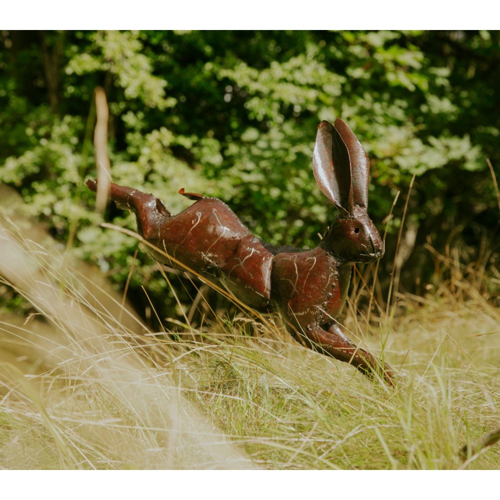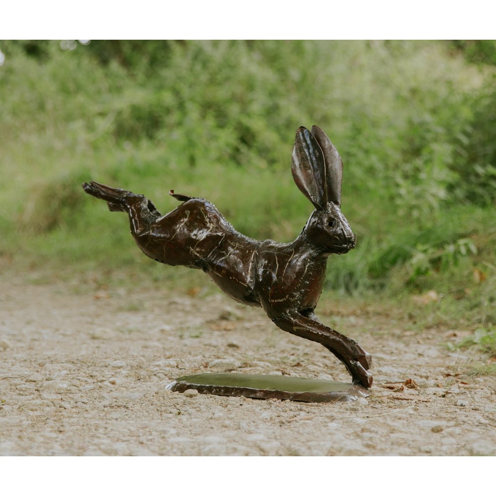 A handsome running Hare frozen in time will certainly add some drama to any garden setting.