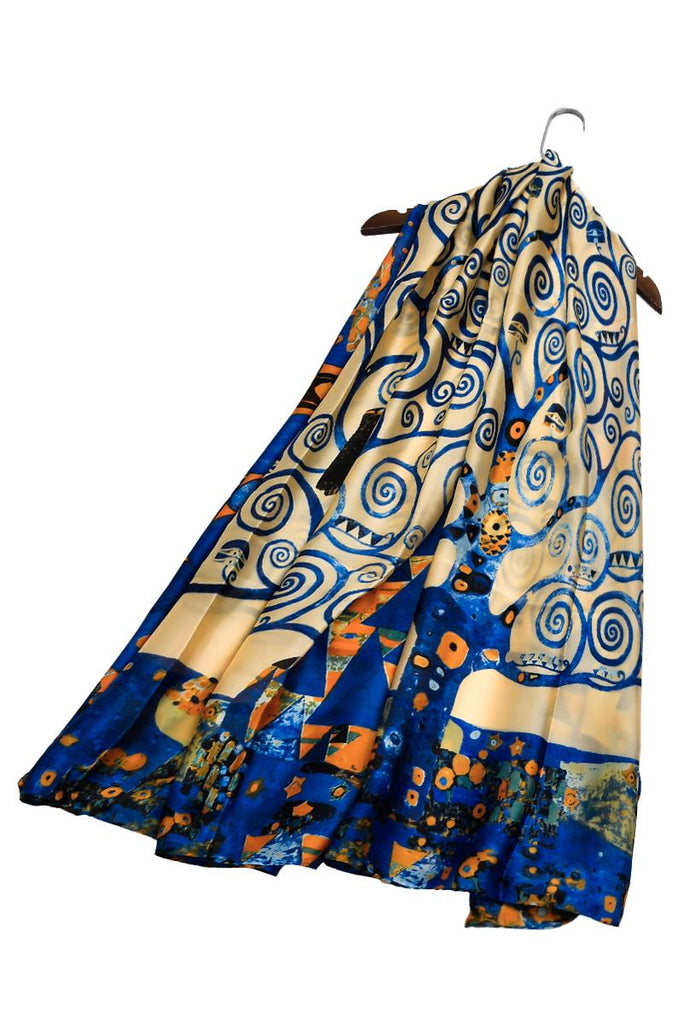 Klimt Impressionist Tree of Life Print Silk Scarf - Blue