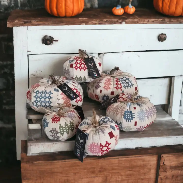 Welcome in the Autumn with these cosy pumpkins, made out of traditional Welsh Tapestry.