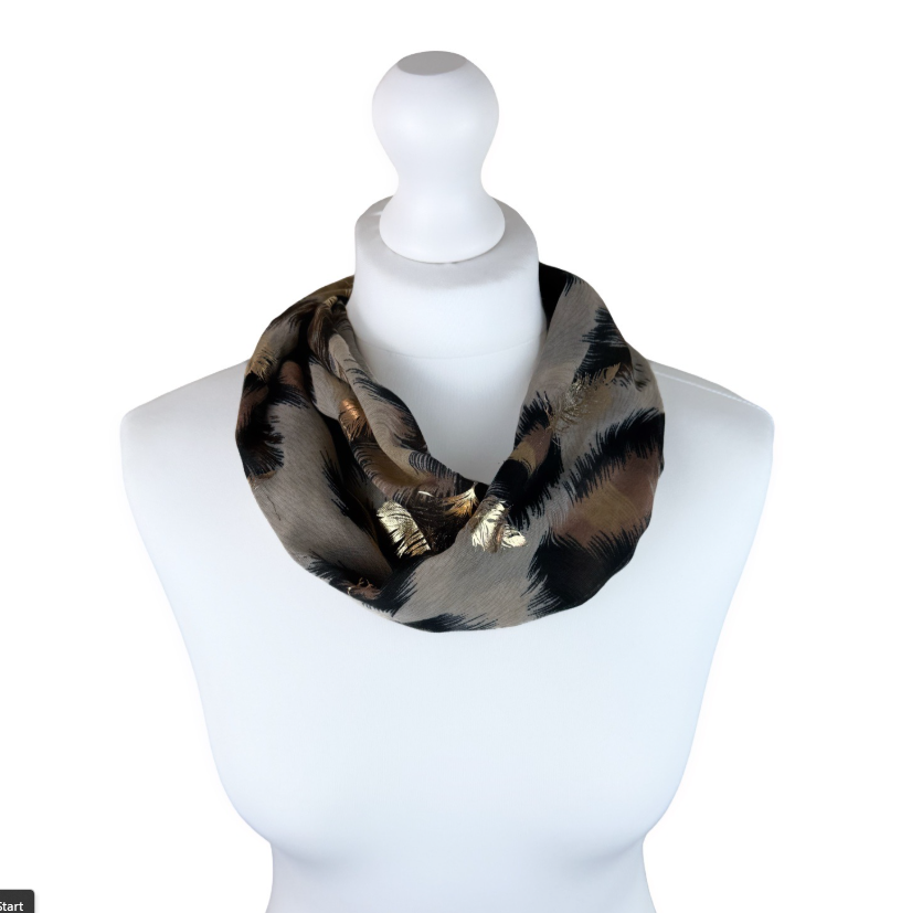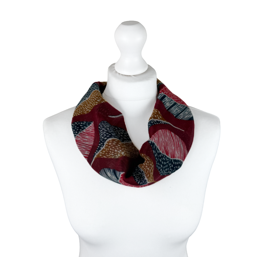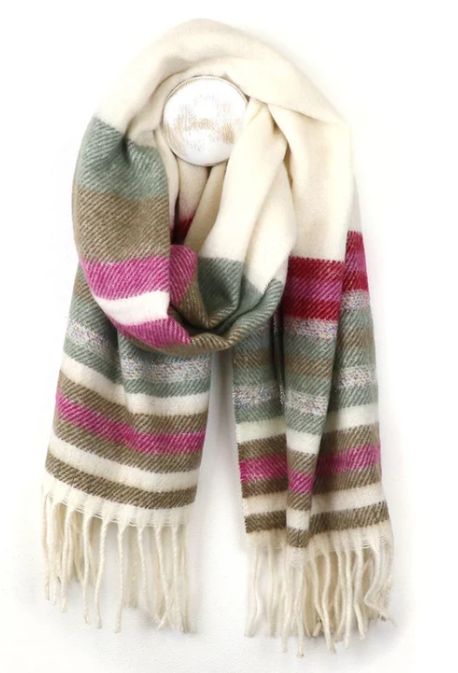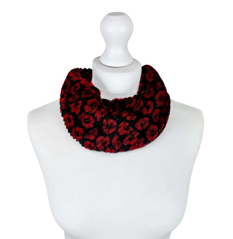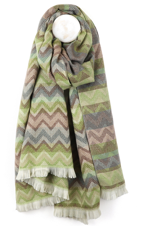 Teal Exotic Flower Scarf With Green Pom Pom Trim