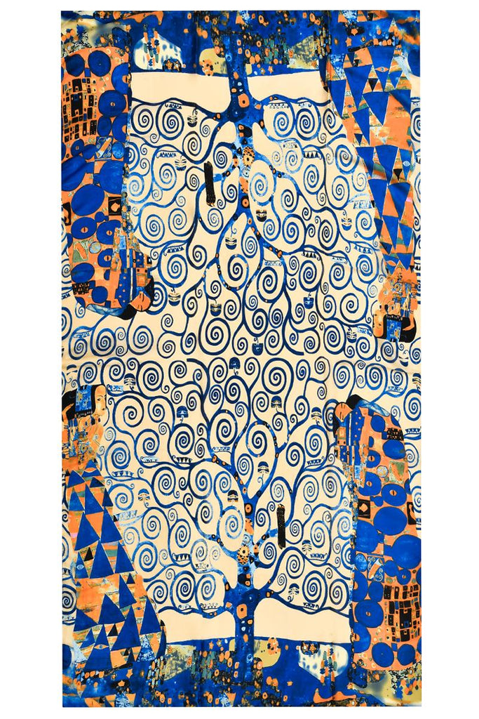 Klimt Impressionist Tree of Life Print Silk Scarf - Blue