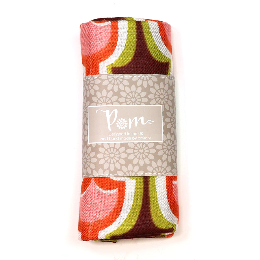 Rich lime green and coral pink mix bamboo scarf with a retro repeat pattern print