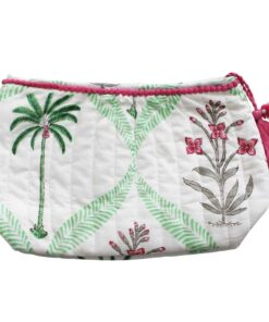 Floral Pink Palms Print Lined Wash Bag