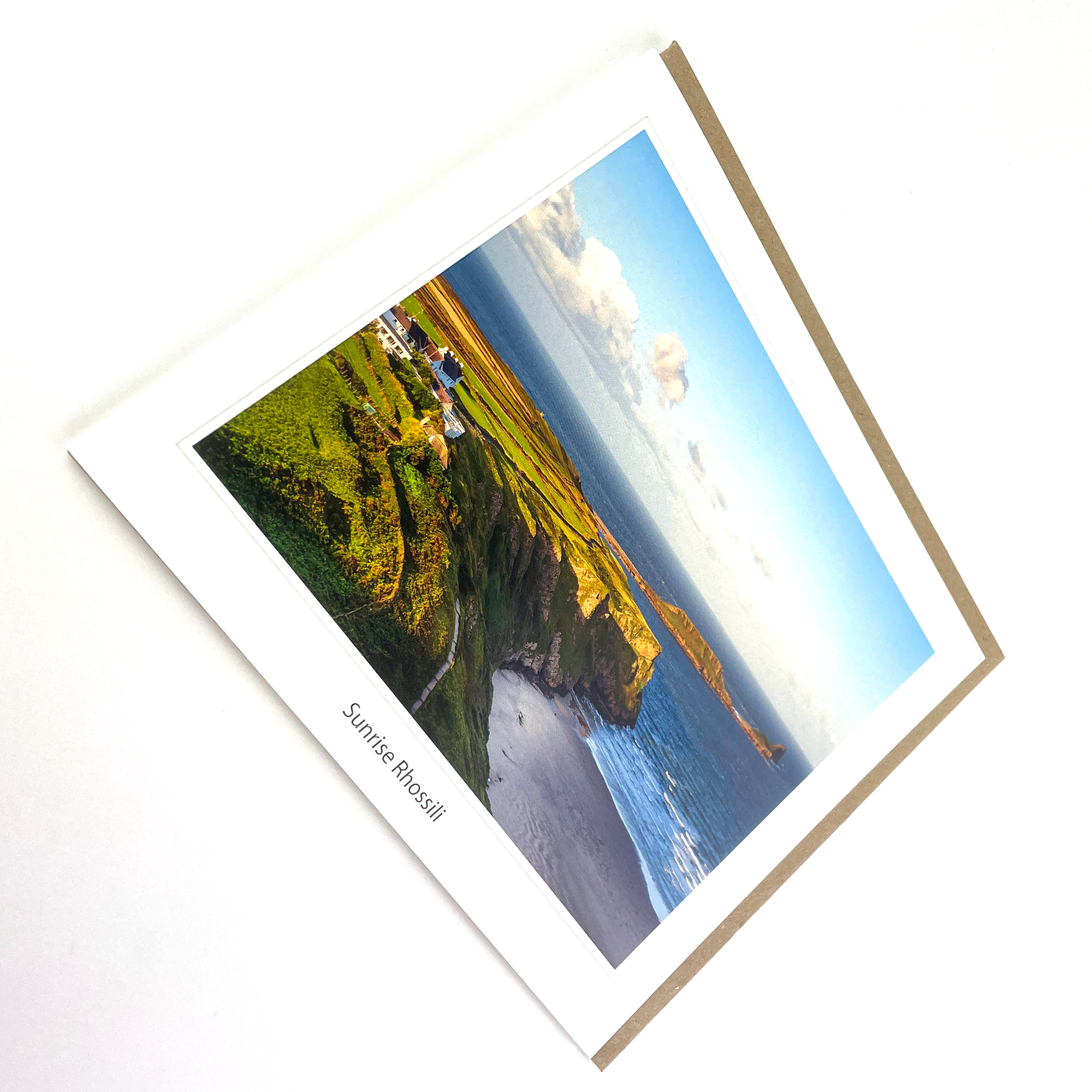 Sunrise Rhossili Greetings Card for sale On Behalf Of Noodle Photography Usually ships within 24 hours.