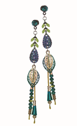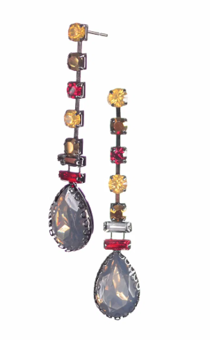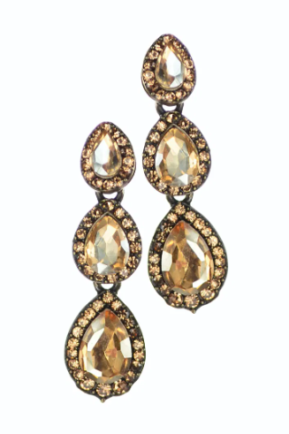 Pear Shaped Crystal Triptych Drops - Bronze / Champagne