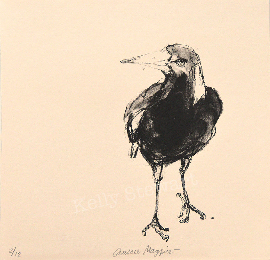 Aussie Magpie Screen Print for sale on Behalf of Kelly Stewart Usually ships within 24 hours.