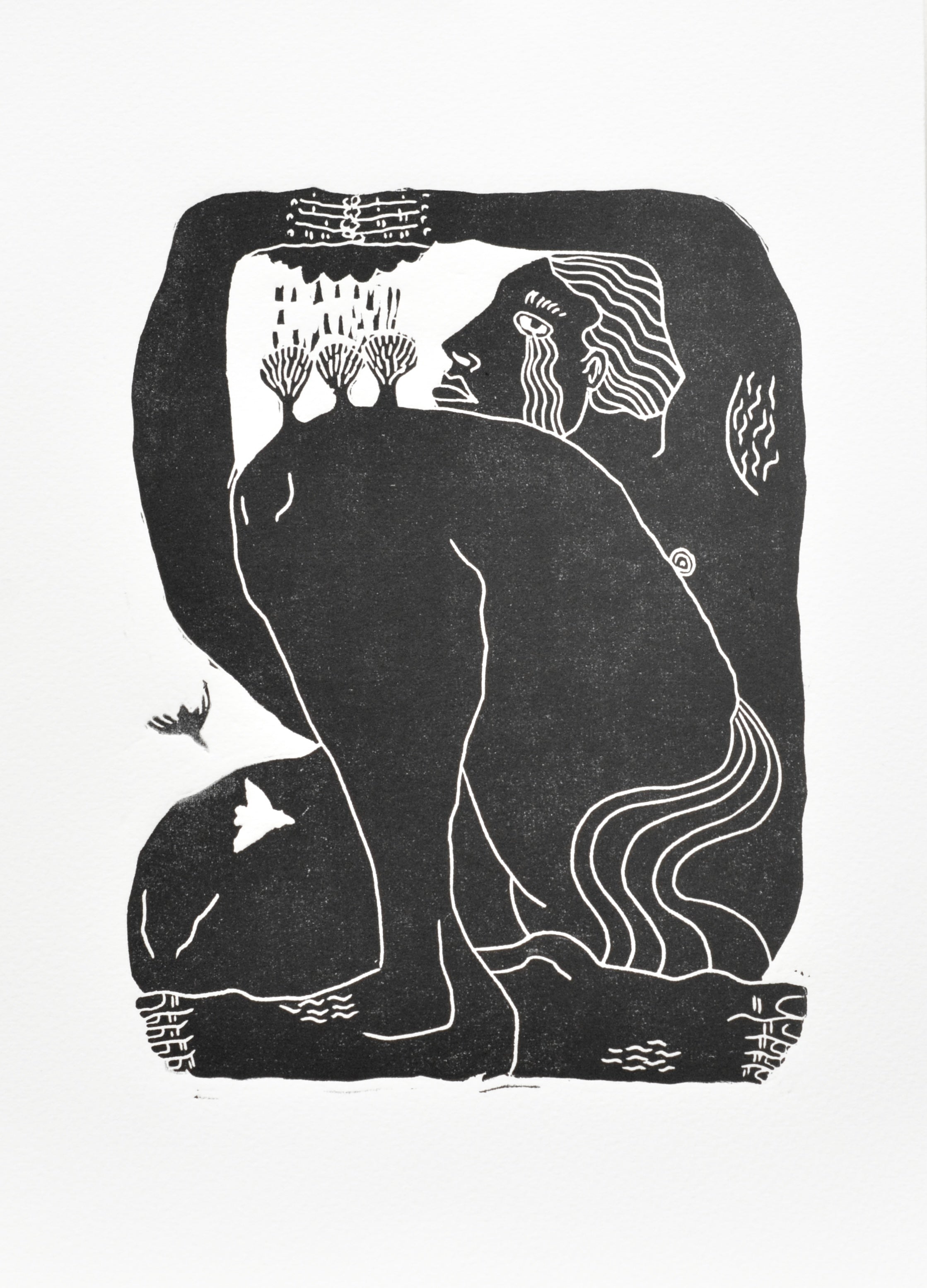 'The Crying Giant' Mounted Linocut Print For Sale on Behalf of Phillippa Walter - Black Usually ships within 24 hours.