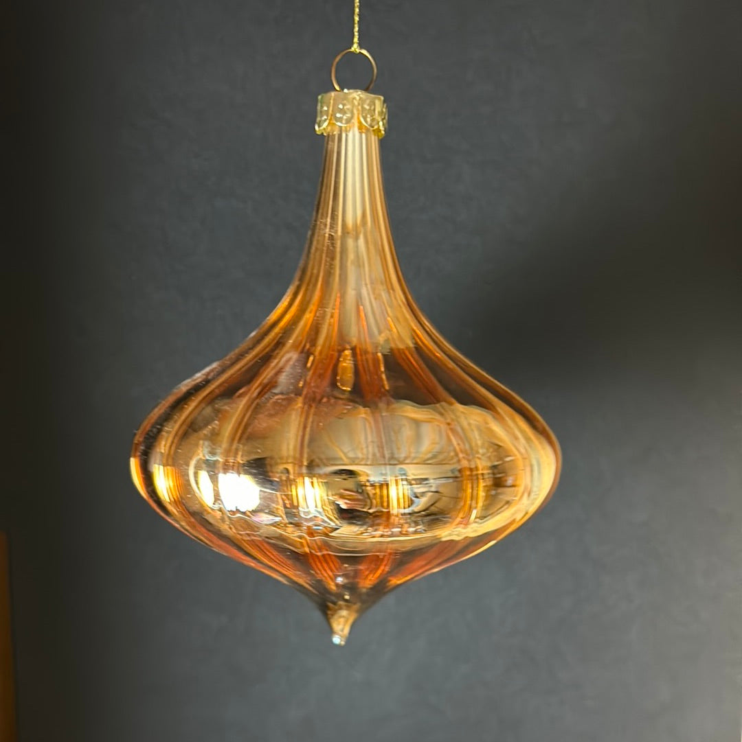 Beautiful light blue and gold, 12cm tall glass baubles.