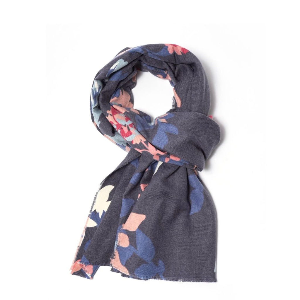 Two Tone Boho Floral Tassel Scarf - navy/white