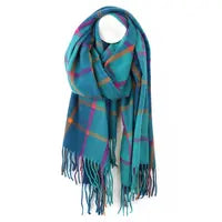 Teal Exotic Flower Scarf With Green Pom Pom Trim