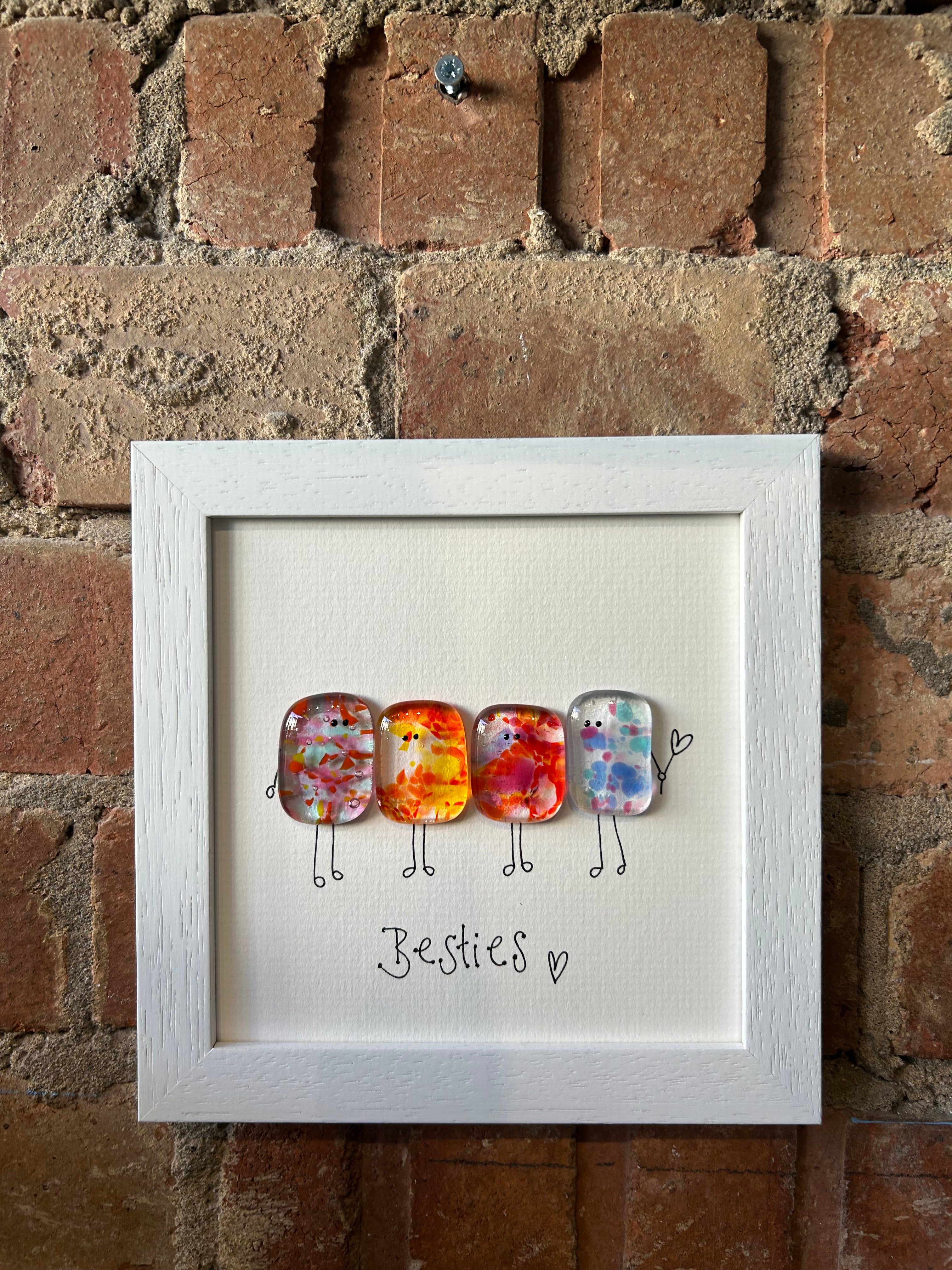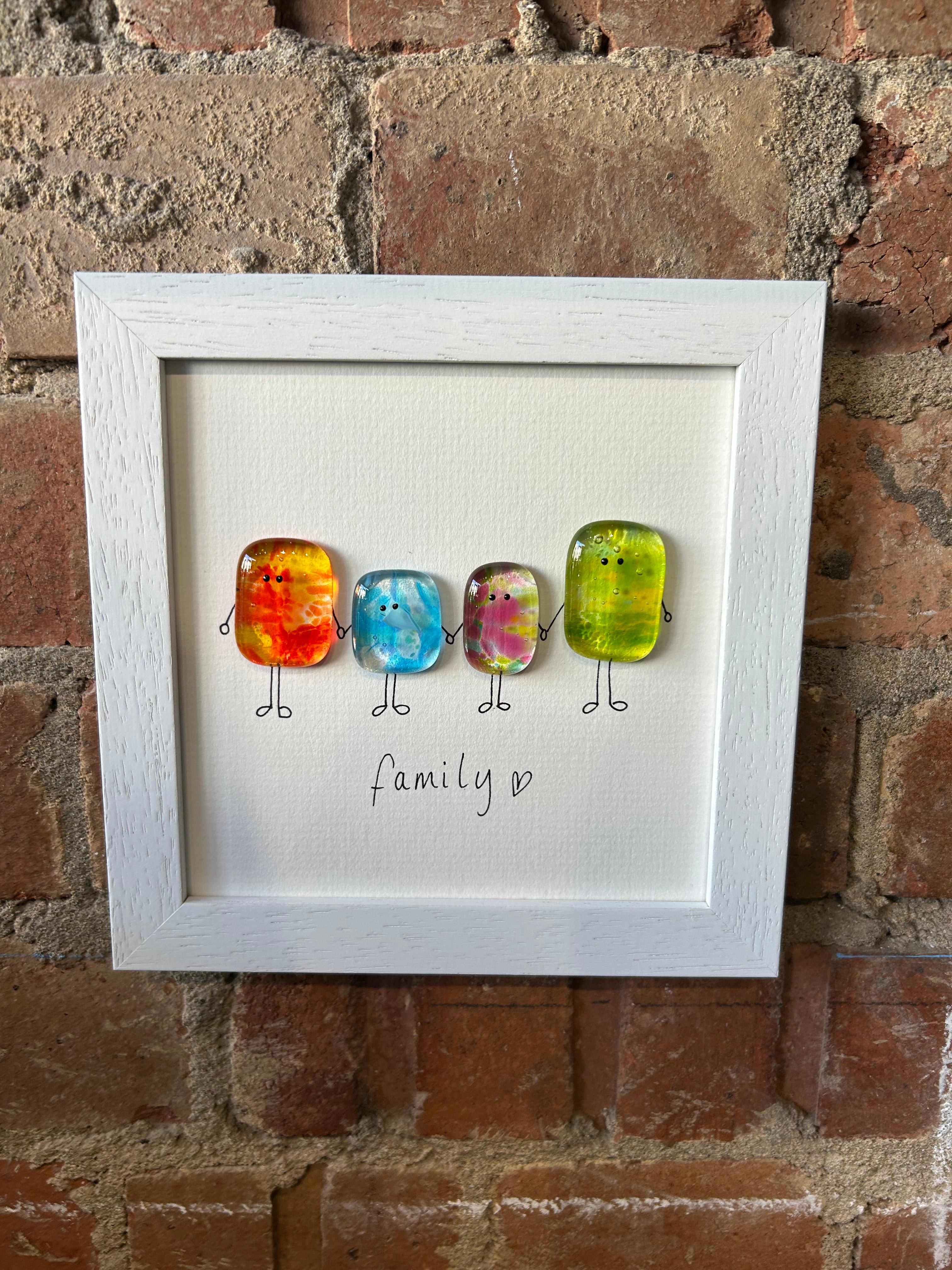 Pebble People Framed Glass 18 x 18 cm Sold on Behalf of the Artist - 4 Pebbles Usually ships within 24 hours.