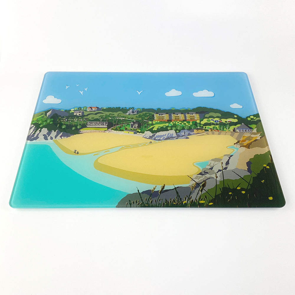 Each illustrated glass chopping board is designed locally in Wales, created in the UK. They are heatproof and shatter proof, but cannot be put into the dishwasher.