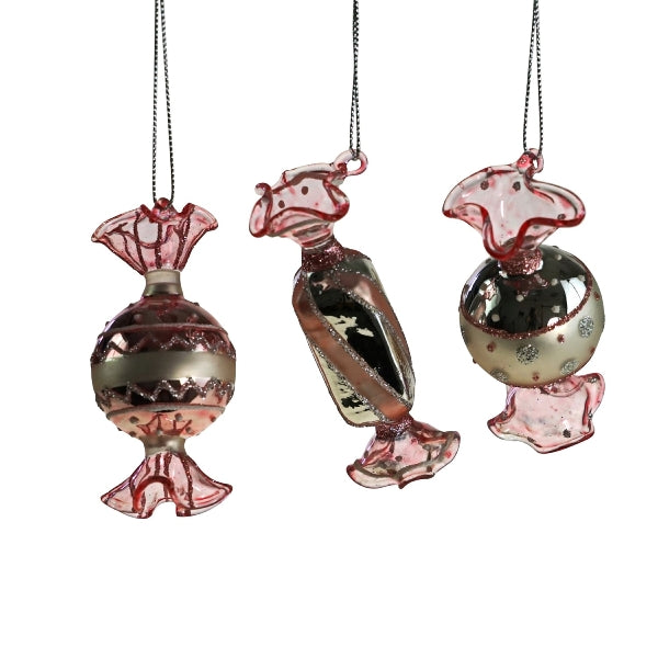 Hanging Glass Pink Candy Christmas Decoration Usually ships within 24 hours.