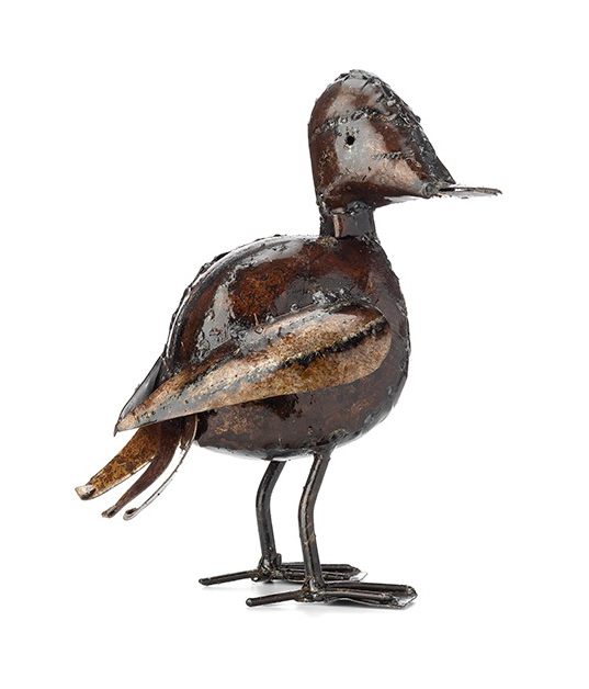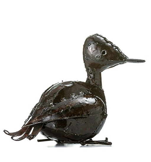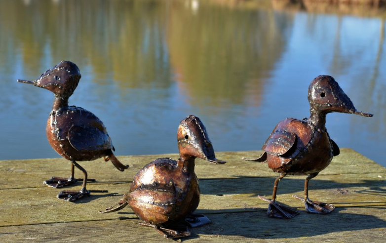 Garden sculptures make stunning metal art features for the home and garden. Coated in a lacquer finish they can be left outside all year. Use a clear spray lacquer to maintain the finish as and when required. A tent peg or stake can be used to secure your garden sculpture into the ground. If displayed on wooden decking use a hook nail over the foot.