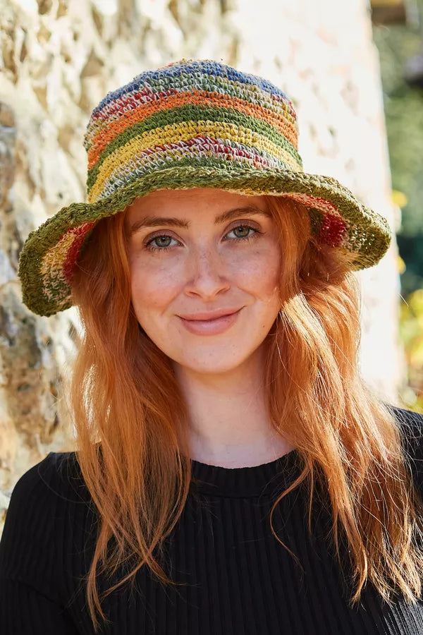 A blend of hemp and cotton, hand crocheted with a wire brim to create the perfect sun hat!