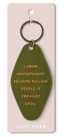 Keyring reads: ' I Grow Houseplants Because Killing People Is Frowned Upon'
