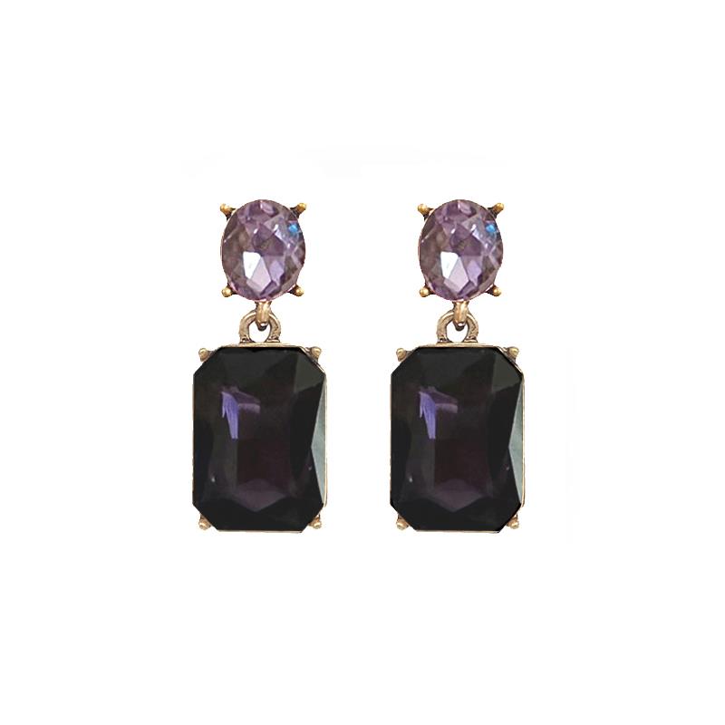 Oval Twin Gem Hook Earring - Purple & Light Purple