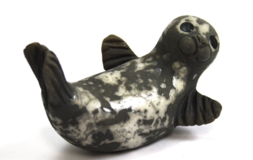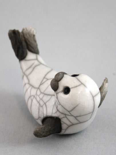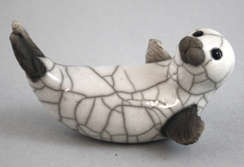 This seal's face is so appealing you can't help but fall in love. The raku process is expertly done to create a wonderful warm patina across the surface of the sculpture.