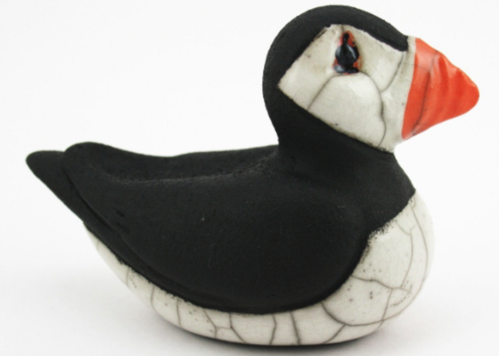 Based on the puffins on our coasts, this Raku ceramic puffin is beautiful and joyful.