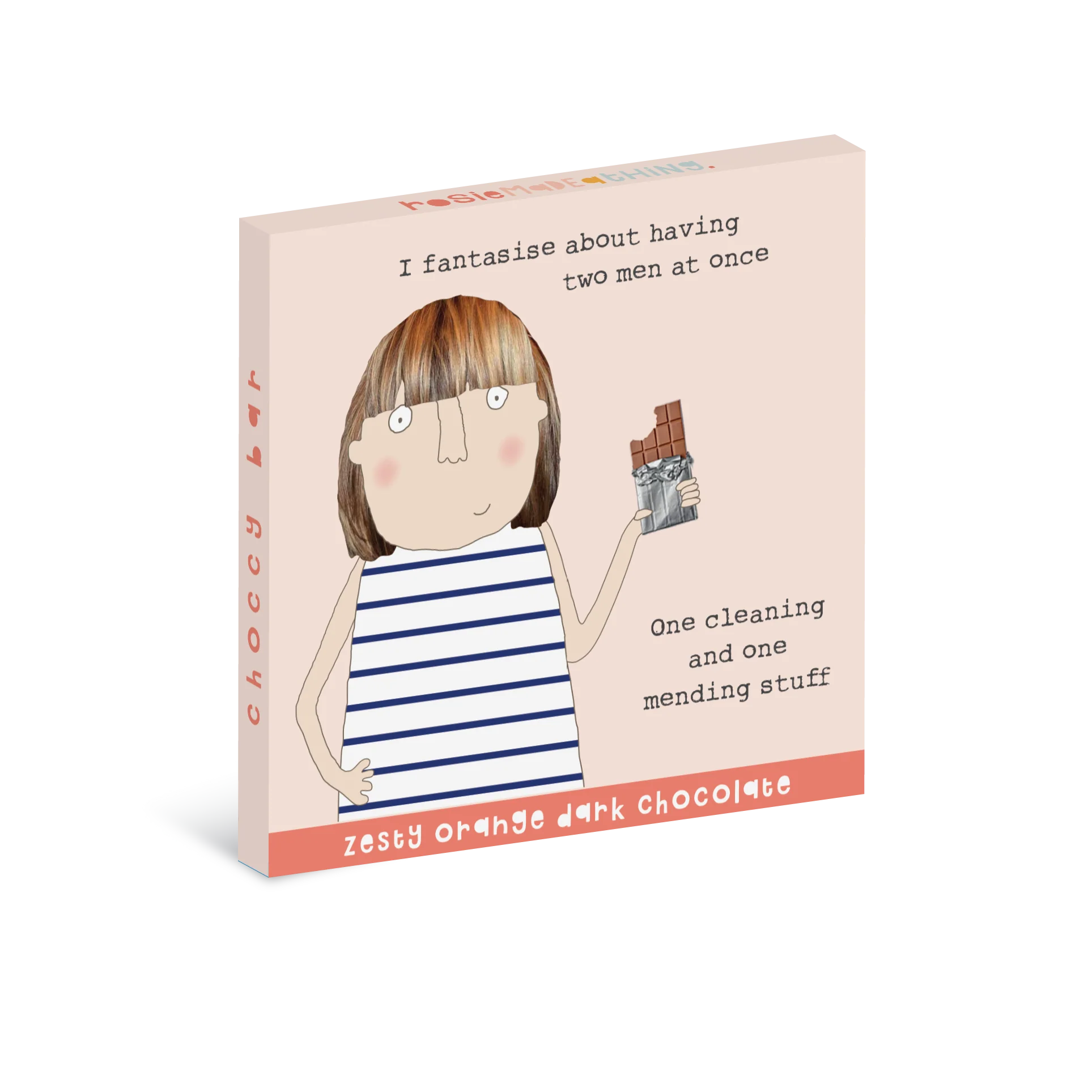 We’re delighted to unveil our Coco Pzazz x Rosie Made a Thing Choccy Bars – 12 bold, cheeky, and irresistibly giftable designs, infused with Rosie’s unmistakable humour. This bar is a smooth, vegan-friendly dark chocolate with a bright, zesty orange twist - bold and balanced.
